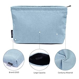 PREMIUM MATERIAL -The makeup bag is made of super soft corduroy material, which is comfortable and easy to clean. Sturdy zippers, nice material, every detail is delicately made. And the zipper is smooth and firm with quality assurance.