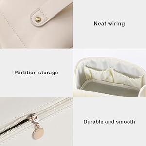 Clever Design: The toiletry bag has a three-layer storage design, including a zipper pocket, small compartments, and a large compartment. It can easily accommodate travel-sized toiletries, large skincare products, or other cosmetics, and keeps different cosmetics separated.