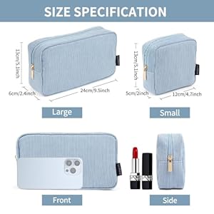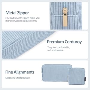 PREMIUM MATERIALS – You will get 2 pack makeup bag in total. The cosmetic bag are made of super soft corduroy material that is aesthetic, Sturdy and easy to clean. Sturdy zippers, nice material, make organizing easy, clean and secure.