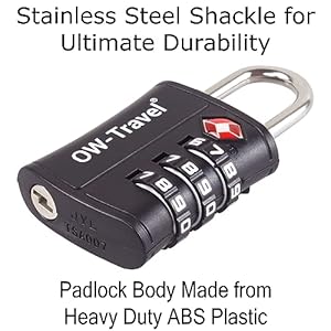 TSA Approved Luggage Locks OW-Travel 3 Digit Security Padlock, Combination Padlocks, Code Lock for Suitcase, Zipper, Luggage, Bag, Case, Backpack, Gym Locker, Tool Box, Outdoor