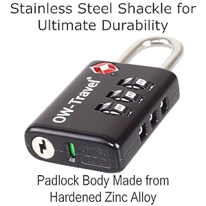 TSA Approved Luggage Locks Suitcase Locks with Open Alert OW-Travel 3 Digit Security Padlock, Combination Padlocks, Code Lock for Zipper, Luggage, Bag, Case, Backpack, Gym Locker