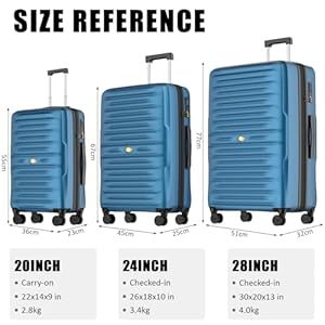 🧳【Airline Approved】 Size: 55x36x23CM(20Inch); Weight: 2.8KG; Capacity: 40L; Cabin suitcase fits most overhead compartments.