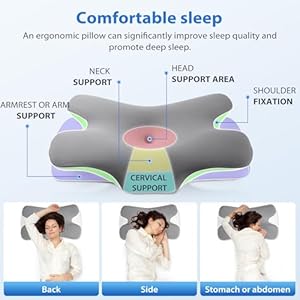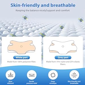 If you are still struggling to find the right height pillow, our cervical pillows have 2 different heights on both sides to choose from, so you can choose the right pillow that better suits your sleeping posture. And there are specific grooves that allow your arms to sleep comfortably underneath. This pillow is suitable for all kinds of sleeping postures, such as stomach, back and side sleeping.