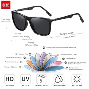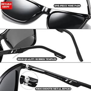 【UV400 Protection】These sunglasses come with UV protection TAC lenses that block 100% of UVA and UVB rays. Polarized lenses eliminate some of the glare, effectively reduce eye fatigue and discomfort, improve wearing comfort.Whether it’s cloudy sunny, UV protection sunglasses are an essential shield to protect your health.