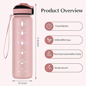 DON’T FORGET TO DRINK: Keeping hydrated is a simple tip to help you stay healthy. reusable bottle with TIME MARKINGS will always remind you to take in the right amount of water to keep you hydrated throughout the day. To better achieve fitness goals, including weight loss, appetite control, and overall health