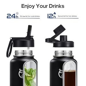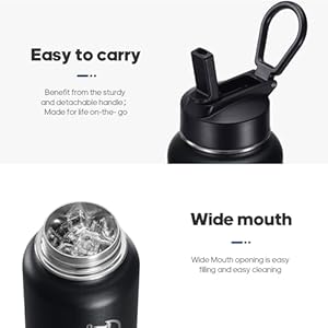❅Insulated Sports Water Bottle: Perfectly vacuum sealed with double wall insulation which makes the water bottle sweat-free! It keeps your drink COLD for up to 24 hours, and HOT for up to 12 hours. And the wide-mouth design is easy to clean and fill with ice cubes.