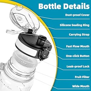 [BPA Free & Non-toxic] This 1000ml water bottle is good for kids for school, and for adults for outdoor sports, which is BPA-free, made of high-quality, safe, and odor-free Tritan plastic, guarantees its durability, reusable, and shatters resistance ability, keeps healthy for your daily water drinking.