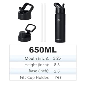Vacuum Insulation Technology: 650 ml, Double-wall insulated water bottle to keep drinks for 24 hours cold and hot for 12 hours, sweat free, no condensation