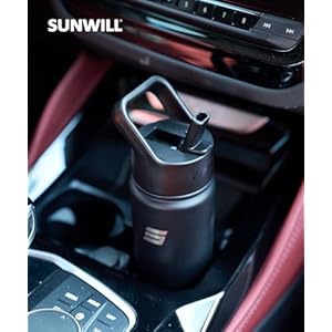 SUNWILL Stainless Steel Water Bottle With Straw, 650ml Insulated Water Bottle Metal, Leakproof Water Flask for Gym & Travel, Dark