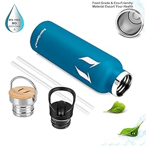 2 INTERCHANGEABLE CAPS – (1) Sport Cap effortlessly delivers a high flow rate that makes it easy to drink from your bottle without removing the lid (2) Bamboo Cap enables you to carry it with ease or attach it to a backpack, for that it is convenient to take it with you on hikes, trekking, camping, or to the gym!